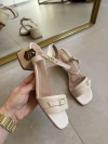 Sandália Couro Off White Salto Bloco Médio Detalhe Fivela Sandália Couro Off White Salto Bloco Médio Detalhe Fivela