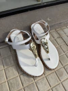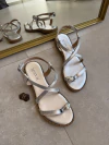 Sandália Rasteira Couro Branca Aplique Dourado na internet