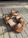 Sandália Couro Caramelo Salto Bloco Médio Detalhe Fivela na internet