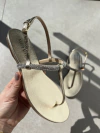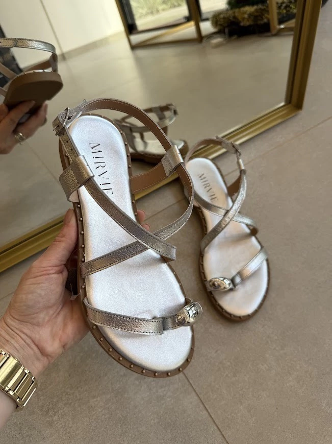 Sandália rasteira em acabamento metalizado dourado, trazendo brilho delicado e um visual sofisticado para o dia a dia. O modelo conta com tiras finas cruzadas que valorizam o pé e detalhe em metal no dedão, um toque moderno que atualiza o design clássico. A palmilha macia garante conforto para o uso prolongado, enquanto o solado com microtachas adiciona charme e reforça o estilo contemporâneo.